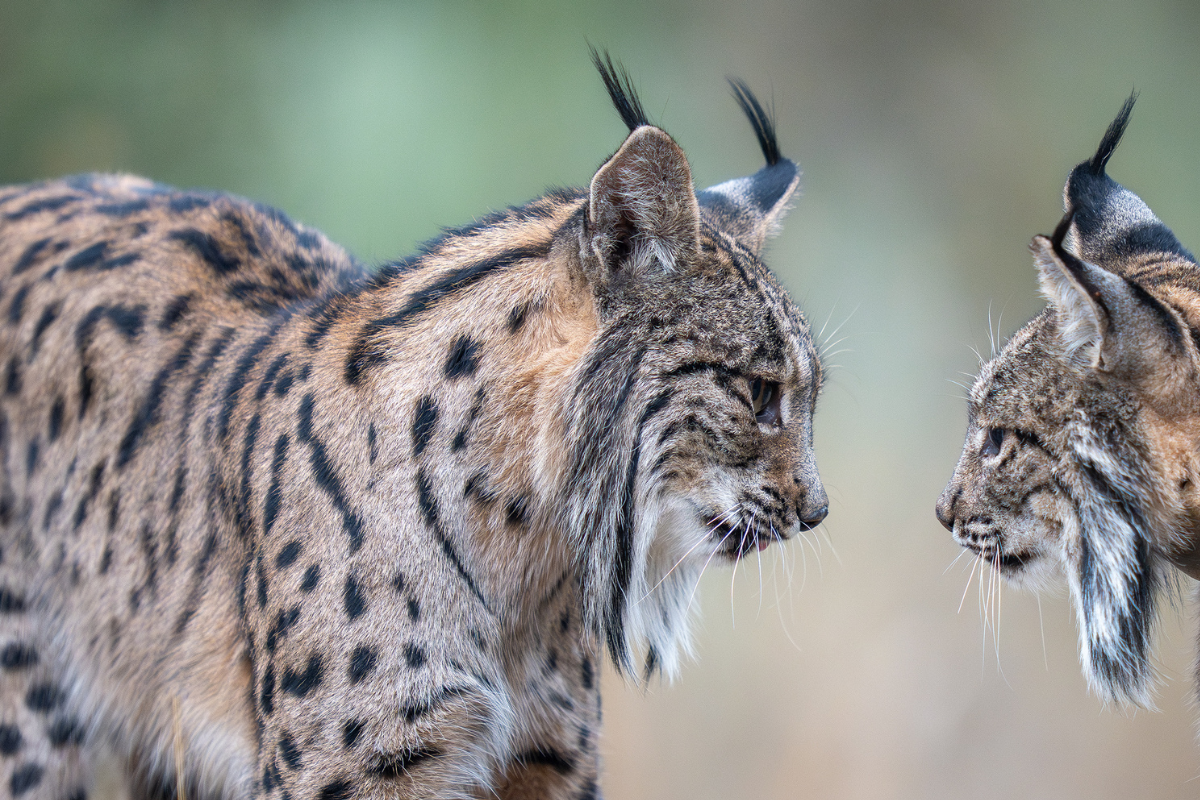 Photo 3. Lynx ibérique mâle (à gauche) et femelle (à droite), se fixant du regard.